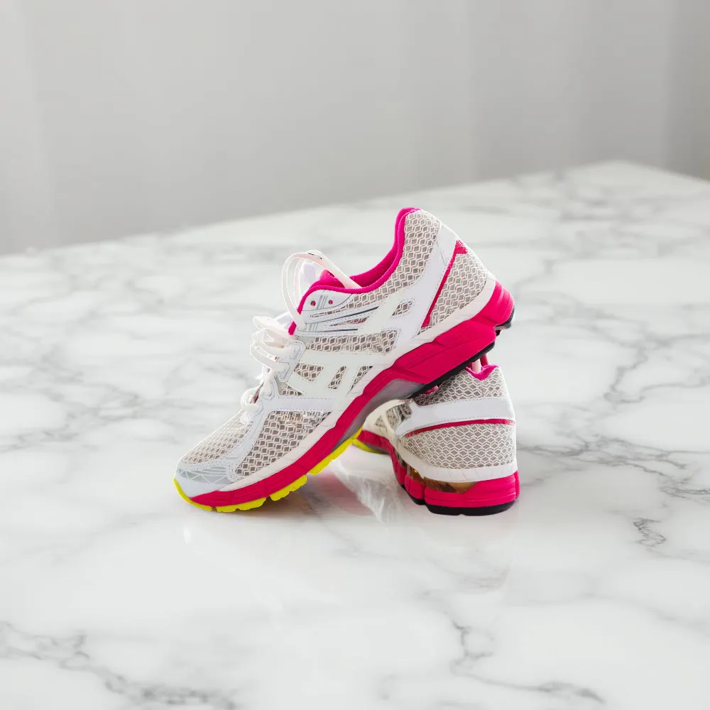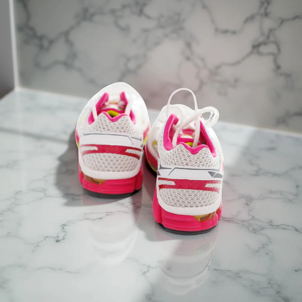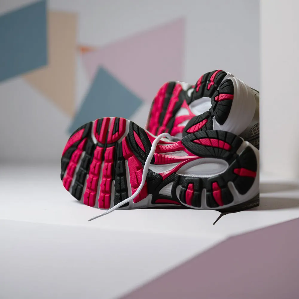 حذاء رياضي للجري للنساء، مصنوع من شبكة تسمح بمرور الهواء، يُعتبر من الأحذية الرياضية المريحة والعصرية.