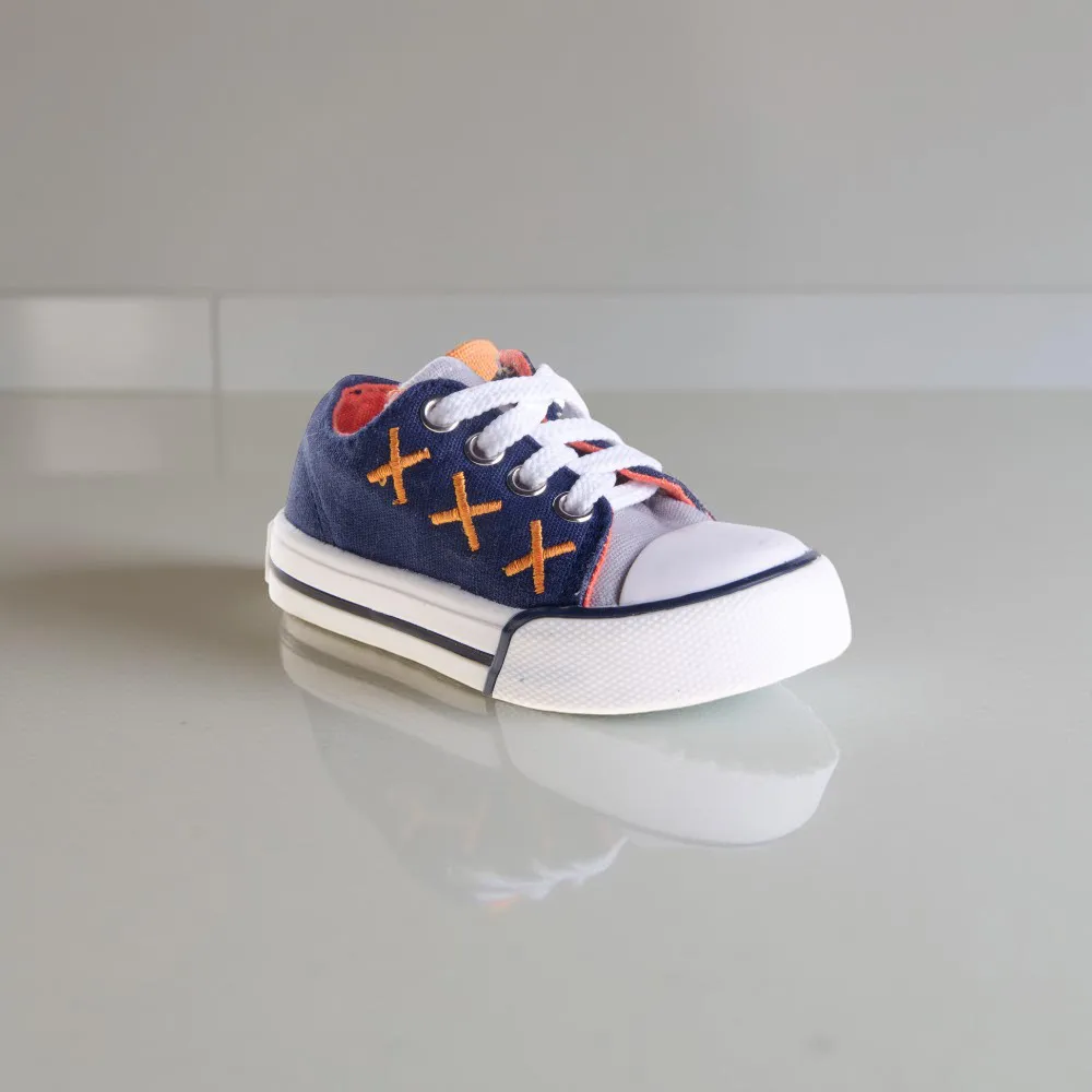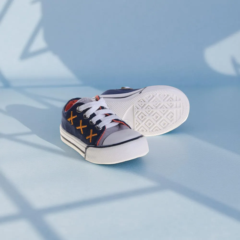 أحذية قماشية جديدة، مريحة. باللون الأزرق الداكن، يسمح بدخول الهواء، بنعل مطاطي غير قابل للإنزلاق. سمح بدخول الهواء، بنعل مطاطي غير قابل للإنزلاق. يتميز بتصميم كلاسيكي ورقبة منخفضة يناسب الأولاد والارتداء اليومي. يمكن غسل هذه الأحذية في الغسالة.